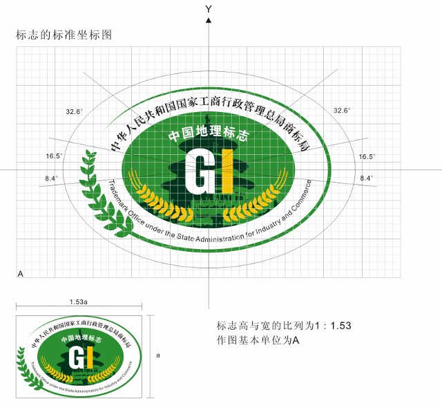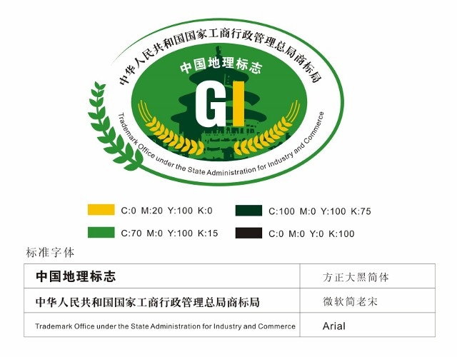 据商标局有关人士介绍,此次推出的地理标志产品专用标志包含中英文“中华人民共和国国家工商行政管理总局商标局”、“中国地理标志”及英文GI(为地理标志英文的缩写字母)等要素,代表了国家注册和保护的统一性;标志主图为天坛,是中华民族的标志性建筑物;图中麦穗代表农业,绿叶代表生命和发展,绿色主色代表具有地理标志特征的农产品,黄色辅色代表丰收、希望。