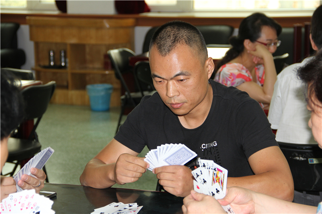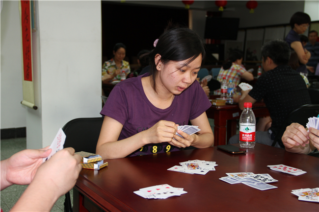 比赛虽结束,笑语常相伴,和谐乐中聚。本届运动会的扑克升级比赛,所有参赛选手联袂上演了一出出精彩的牌艺大战。在牌局中大家奉献的是技术实力,展现的是团队配合,收获的是和谐快乐。“欢笑、祝福、赞美”这一串串优美而动听的音符在赛场上久久回荡……