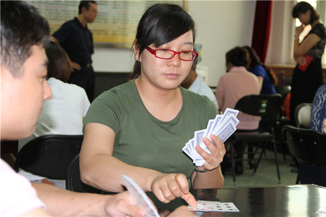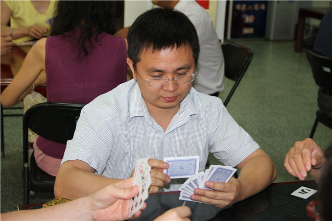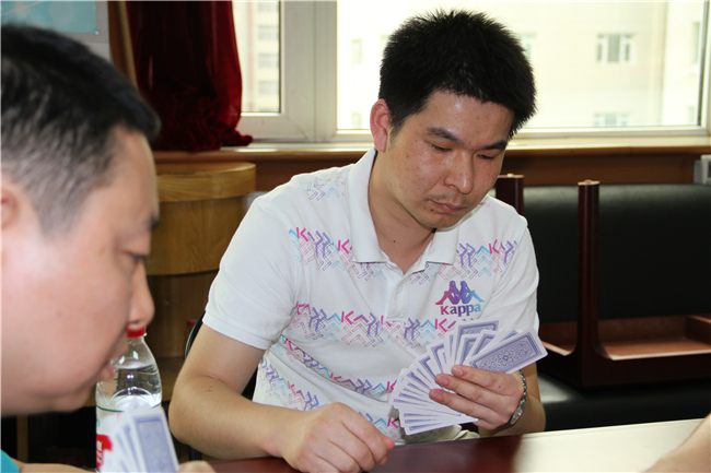 本次升级比赛采取“不抄底”、“1小时定输赢”的方式,是技术、配合、运气的综合比拼。第一轮比赛中,黄家华同志领衔的8对选手依靠稳定的发挥、高超的技术和默契的配合冲出重围,迈进50强,进军第二轮。第二轮比赛紧张激烈,扣人心弦。经过激烈的角逐,黄家华和赵江涛、徐琳和耿娟娟、卢榆和张娜娜、戴艳和李硙、汪冬平和肖苏共5对选手闯入25强,杀入第三轮。