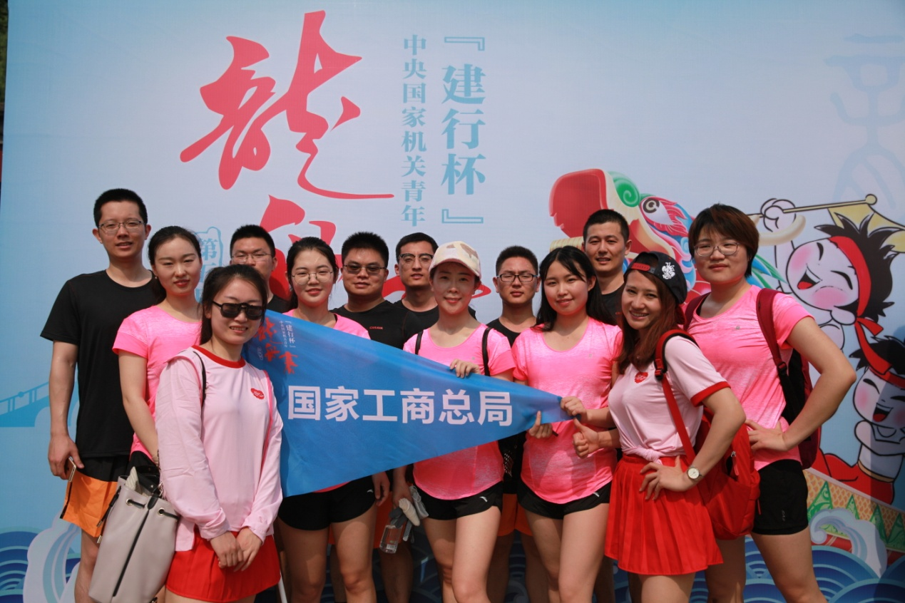 为贯彻落实全民健身计划,营造健康向上、生动活泼的机关文化氛围,激发机关青年团结拼搏、奋勇争先的精神。中央国家机关团工委于5月19日在京举办了第五届中央国家机关青年龙舟赛。按照总局机关党委的要求,在综合司、商标局党委的大力支持下,机关团委积极协调组织,商标局团总支承担组队参赛具体工作。由肖聂尊、樊昊、徐萍丽、李希盛、张雁飞、郑楠、臧宁、张路路、胡爱国、张宇、孙乔乔、贾敏、韩笑等13名青年同志组成红盾龙舟代表队,代表总局参加了此项赛事。
