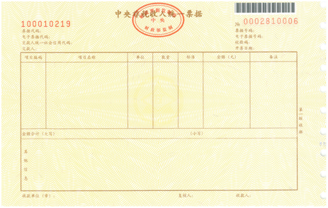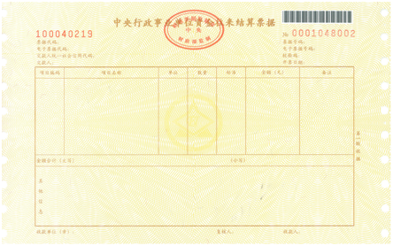 《中央行政事业单位资金往来结算票据》(机打),式样如下: