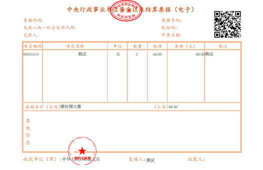 《中央行政事业单位资金往来结算票据》(电子),式样如下: