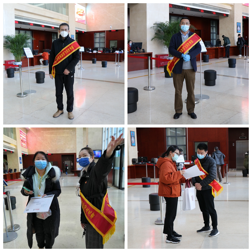 习近平总书记在统筹推进新冠肺炎疫情防控和经济社会发展工作部署会议上作出“让党旗在疫情防控斗争第一线高高飘扬”重要指示后,商标局迅速贯彻落实,在疫情防控最吃劲的关键阶段,广泛开展党员“亮身份、树形象、做表率”活动,组织党员到商标注册大厅开展志愿服务活动,进一步发挥党员先锋模范作用,支持大厅疫情防控工作,以更高的标准为群众提供更加优质的服务。