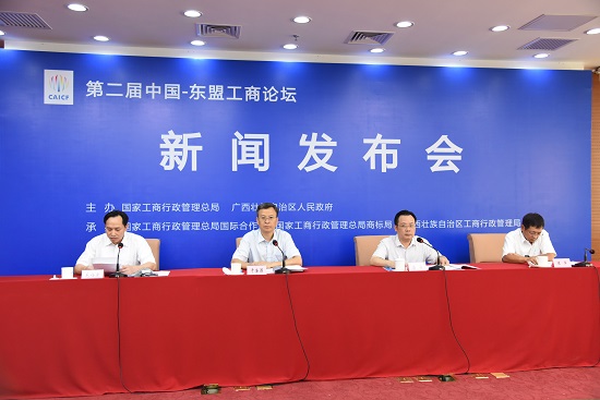 8月12日上午,第2届中国-东盟工商论坛新闻发布会在北京举行。新闻发布会由国家工商总局办公厅主任、新闻发言人于法昌主持,广西壮族自治区人民政府副秘书长唐宁、 广西壮族自治区工商局副局长、党组成员、新闻发言人毛任建出席发布会并分别发布新闻。
